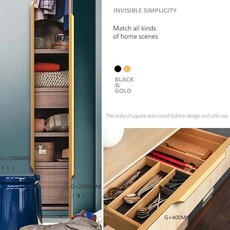 Gorgeous HD610 Aluminium drawer pulls gold concealed handle