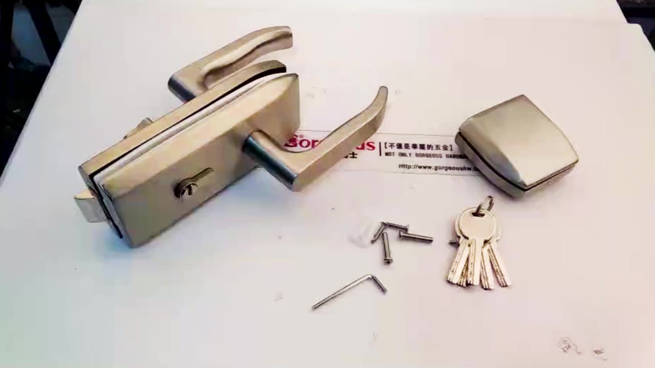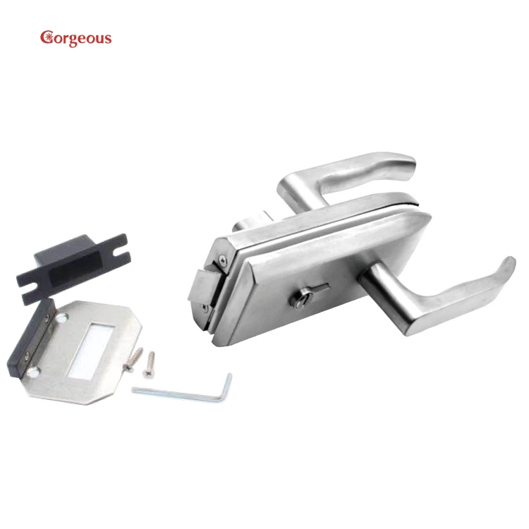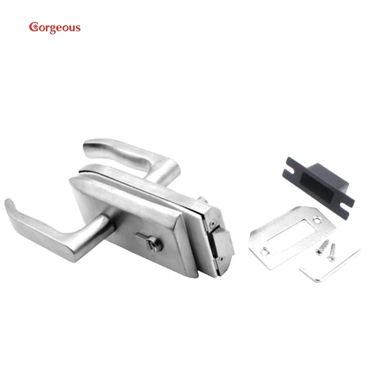 frameless lock office central double partition cylinder tempered swing glass door lever lock set with handle