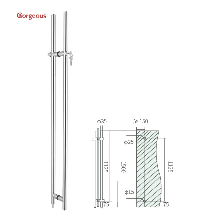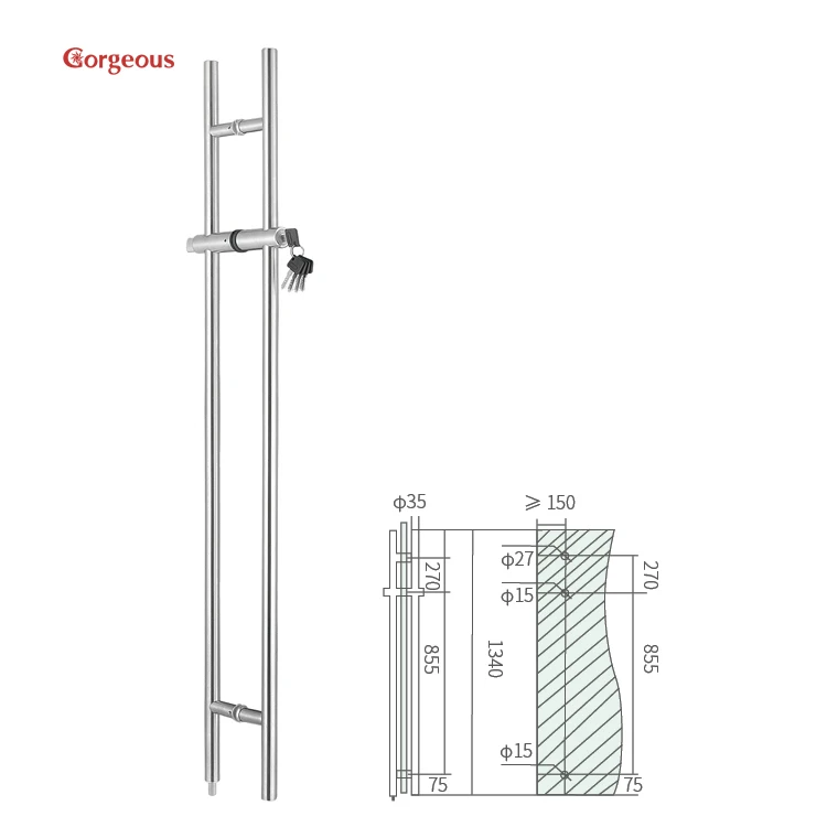 glass door handle stainless steel glass door lock with handle modern long pull handle tempered handle lock for glass door